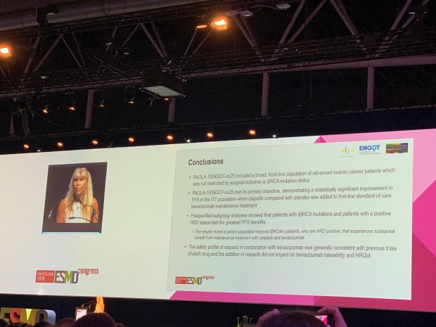 New trial data presented at the ESMO cancer Congress 2019 in Barcelona, Spain, show excellent results for the combination of Olaparib and Bevacizumab. The combination looks likely to become standard of care in at-least a subgroup of patients.