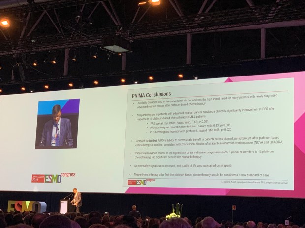 A landmark study presented at ESMO congress at Barcelona shows significant benefits for maintenance treatment with the drug Niraparib.